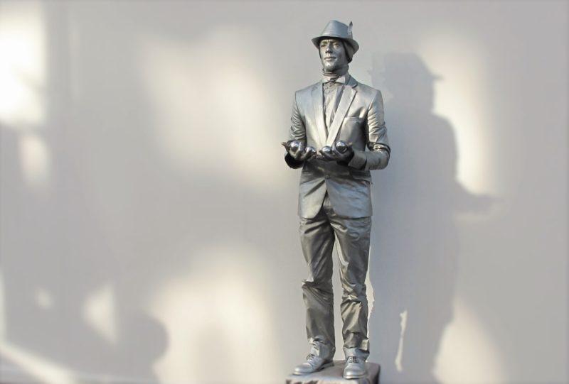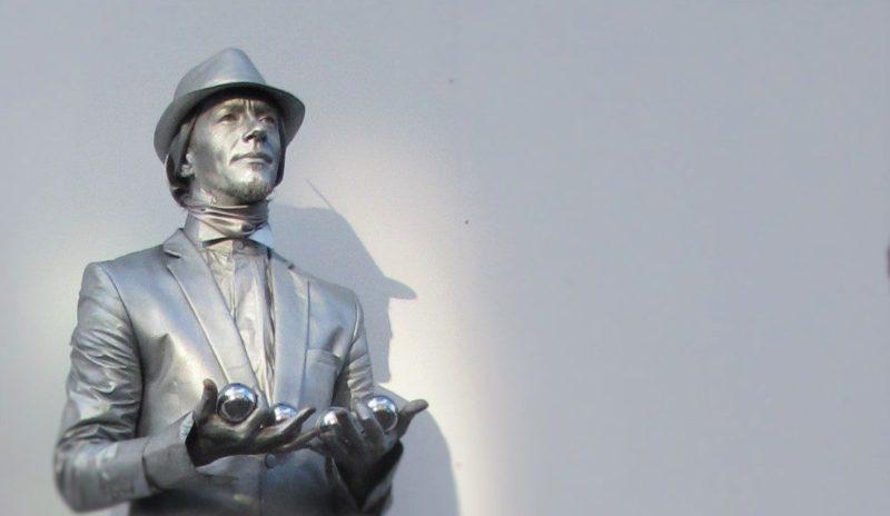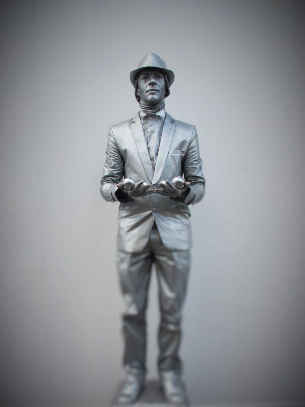 Monsieur Oliver Chrome and he is a living executive toy. The ultimate in opulence, for those who prefer manual entertainment to mechanical. He exists to entertain as this is his only function. He started life in the head office of a high powered New York business corporation, but soon grew tired of the dull and repetitive click-click-click motion of the standard executive toy, so decided to venture further afield and bring life to the four silver spheres that are the tools of his trade.