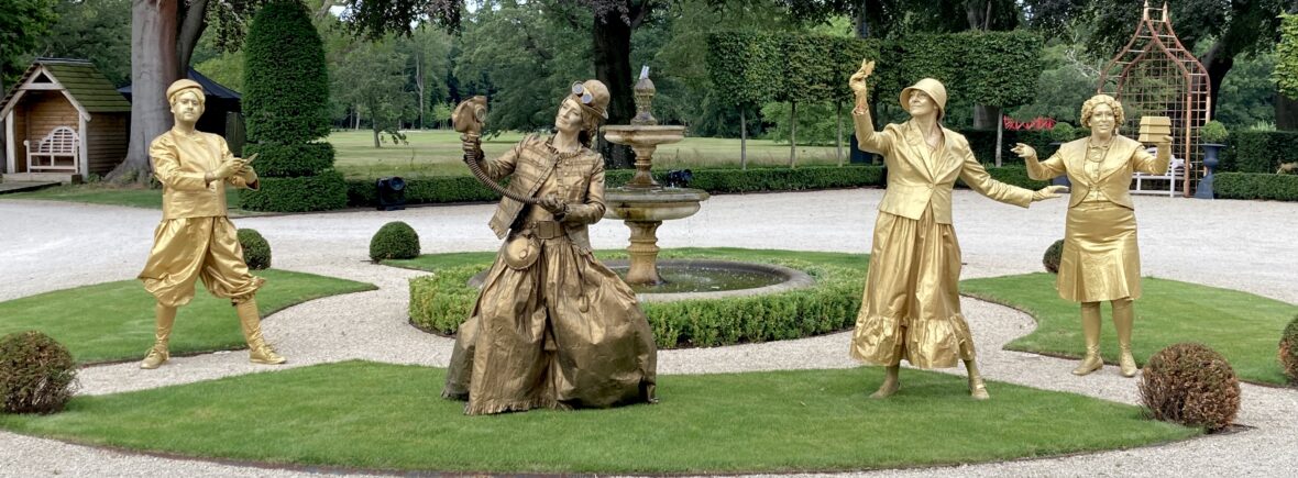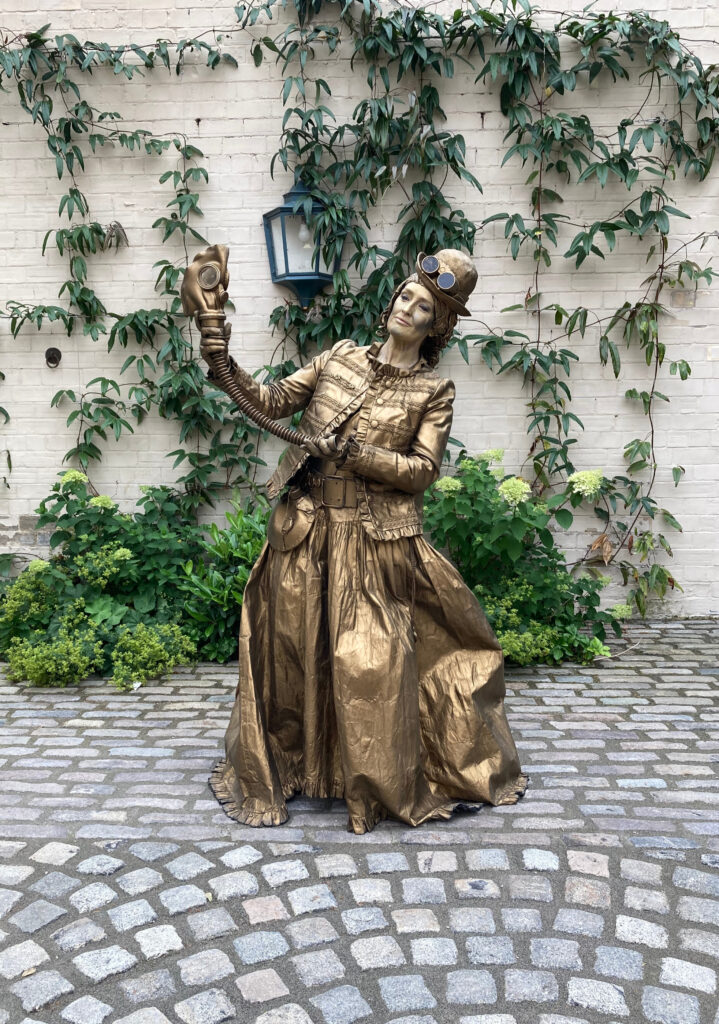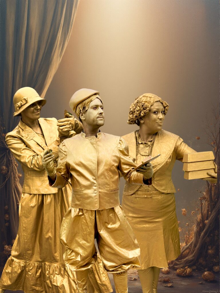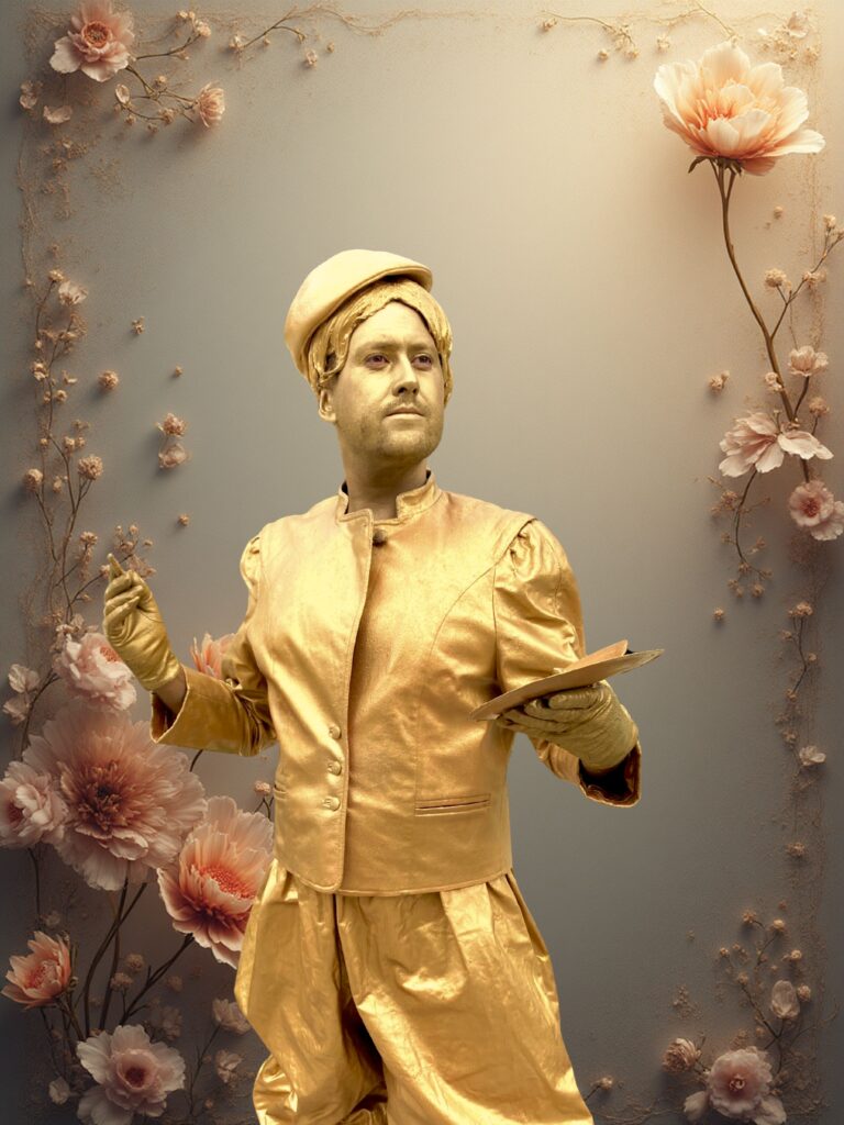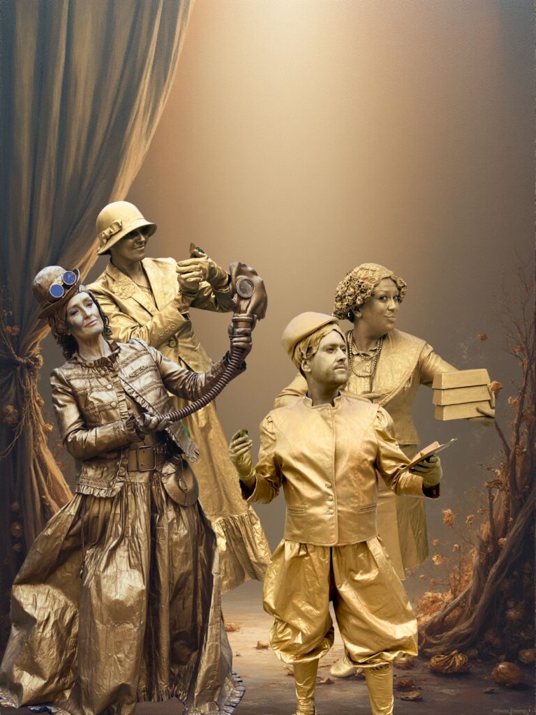 The Golden Collection is an ensemble of living statues inspired by iconic eras — from the flowing elegance of Art Nouveau to the imagination of Steampunk, the bold spirit of the 1960s, and the timeless soul of the Artist.